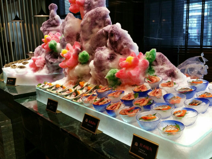 餐厅位于珠江新城 临江大道57号中和广场五楼(省博物馆),天花板海鲜自助餐厅,有三百多种品类的海鲜自助,手臂大小的澳洲龙虾 ,鲜活的新西兰大鲍鱼、新鲜的海胆,鲜活的各类海蟹 ,海虾等等!此外,更有鲜嫩的东星斑,刺身,美味的水果饮料和哈根达斯冰淇淋。