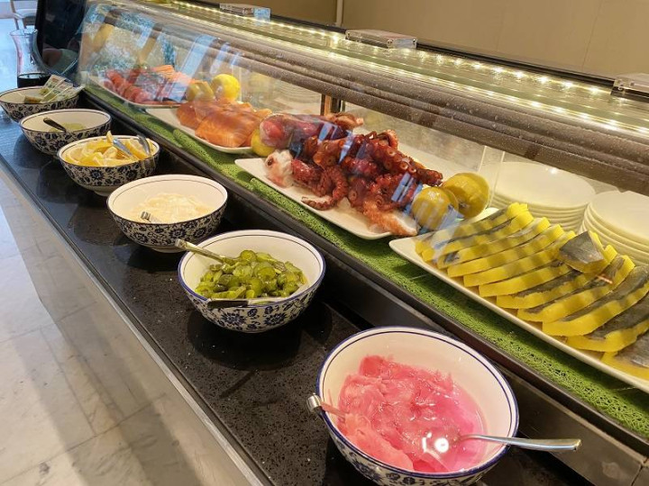 广州富力君悦大酒店自助餐 凯菲厅,以自助餐为主,位于珠江西路12号富力君悦大酒店22楼,是一家五星级自助餐厅。环境自然没话说,四周都是通透的玻璃,靠窗坐可以环顾珠江新城西部的大部分景观,餐厅内典雅、大气。